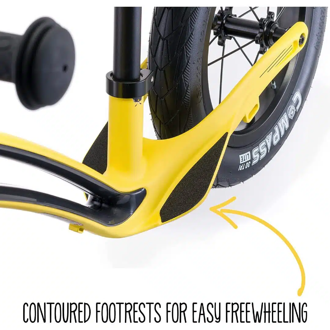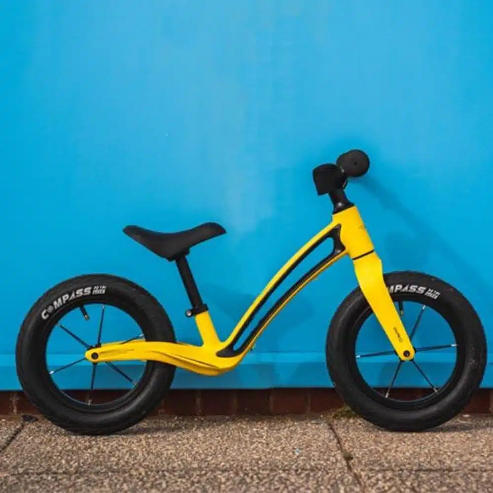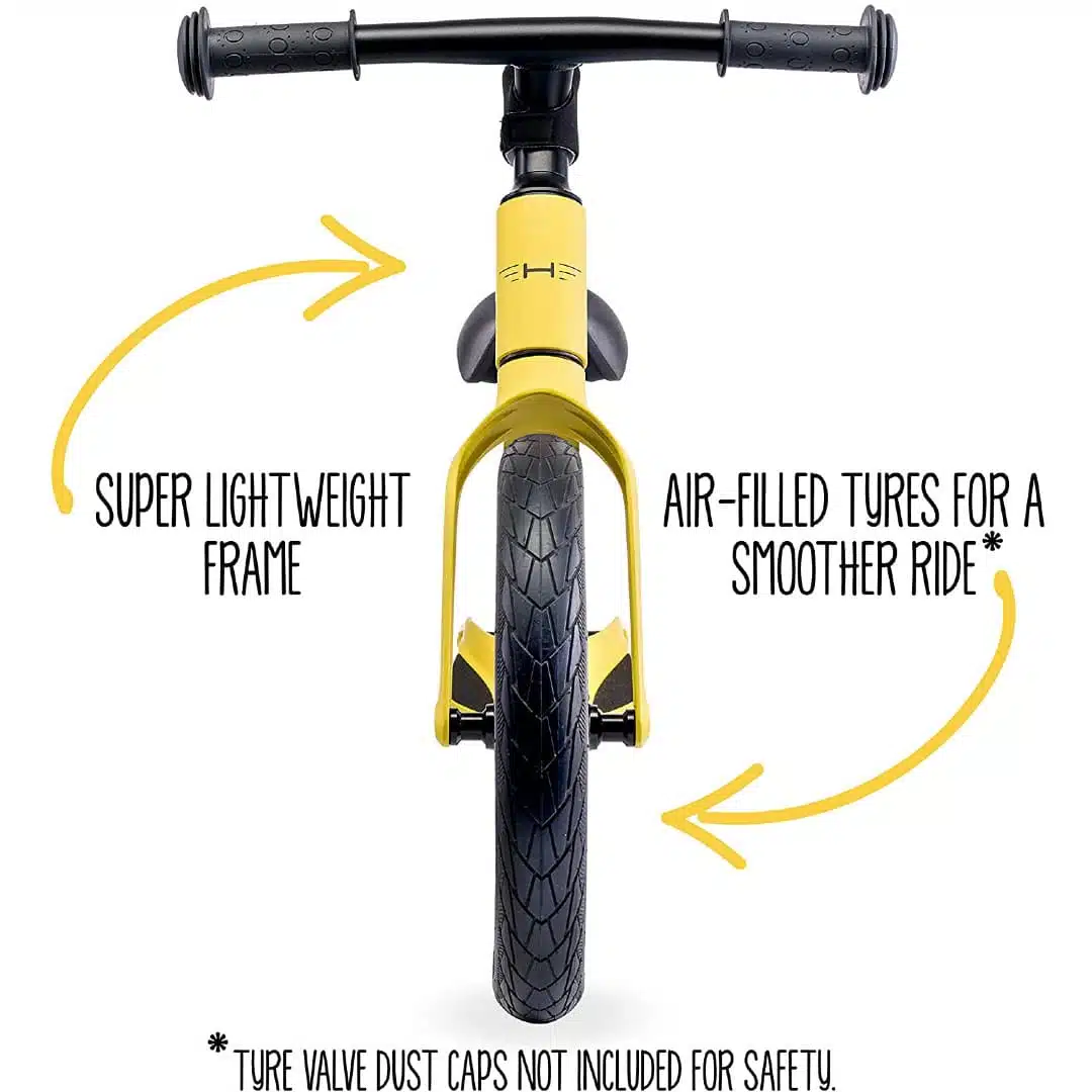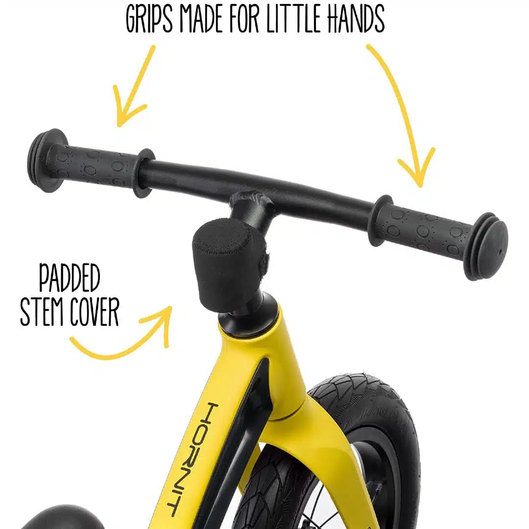 Set your little one free with the Hammer Yellow Hornit Airo Balance Bike. Levitating light @ (2.95kg) and seriously stylish, the Hornit Airo Balance Bike will allow them to experience the thrill of gliding like a bird (on two wheels)! The Hornit Airo Balance Bike has grip-taped footrests contoured into the frame, which means they can easily use their feet or freewheel. The Hornit Airo Balance Bike is sure to turn heads with its matt yellow finish and contrasting black detailing. Like its namesake, the Yellowhammer bird, this bike stands out from the crowd.