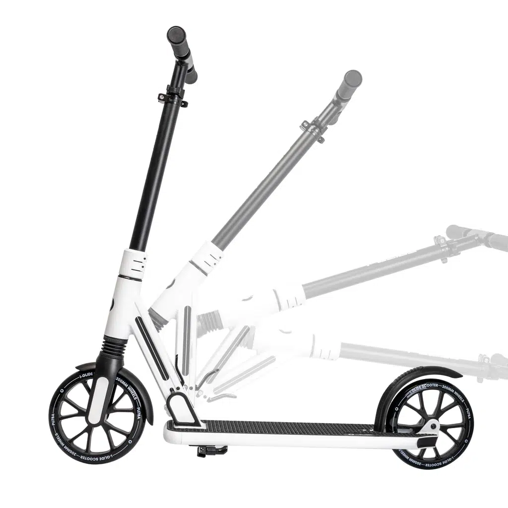 The large wheels and precision bearings provide a smooth, fast ride across pavements and urban streets, while the rear foot brake gives you reliable stopping power. Whether you’re avoiding traffic, looking for a fun way to exercise, or simply want an eco-friendly commuting solution, the I-GLIDE Commuter Scooter White is the ultimate everyday ride.