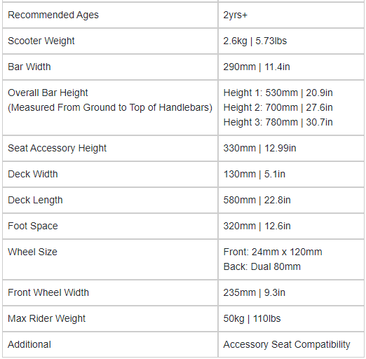 - Scooter Recommended for 2yrs and above, or based on the child’s development